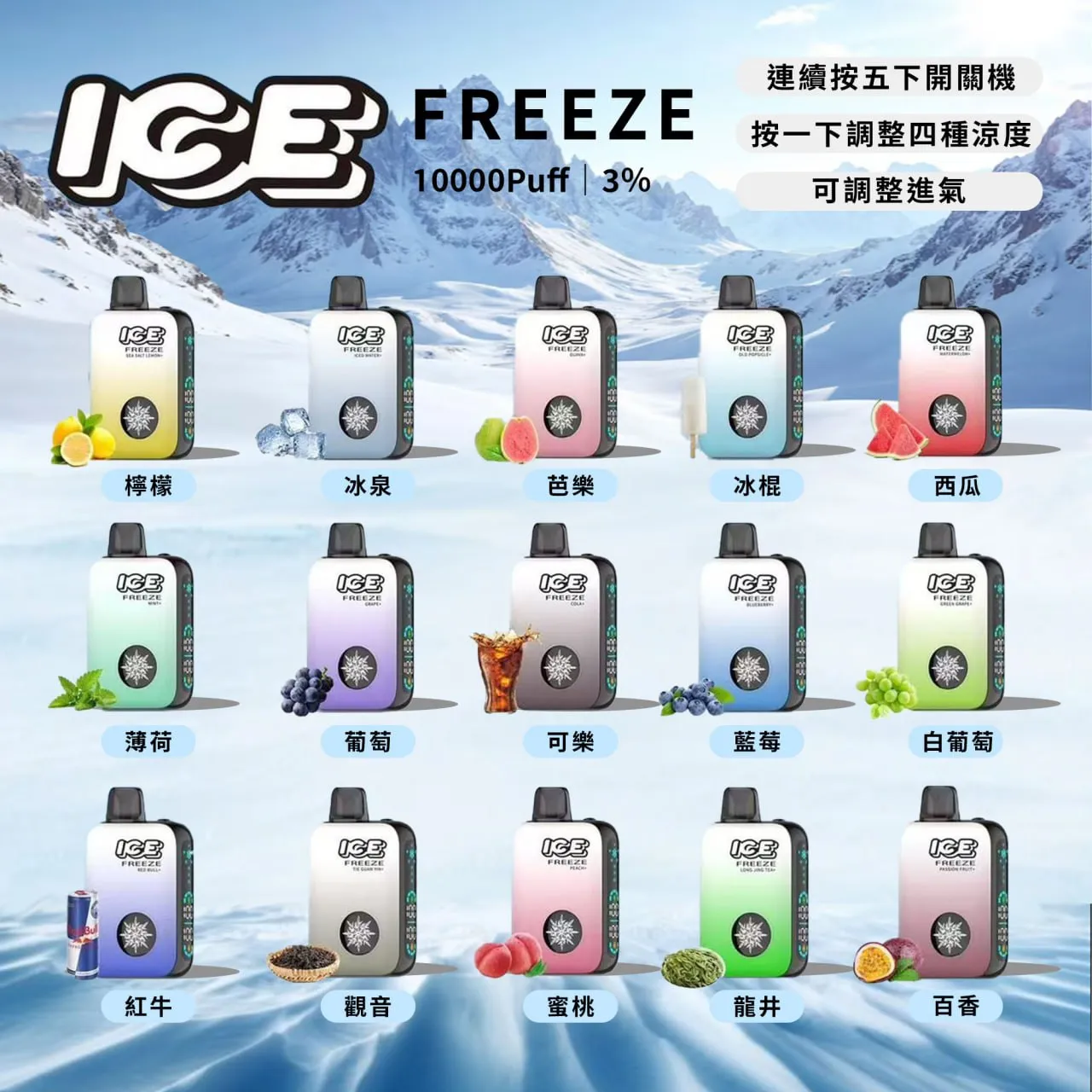 ICE FREEZE10000口一次性電子煙,結合大容量煙油與可調式冰感設計,帶來前所未有的持久體驗。內建智能霧化系統與高效能電池,讓每一口都能保持穩定濃郁的口感。無論是新手還是老玩家,都能在ICE FREEZE系列中找到專屬的順暢吸感。